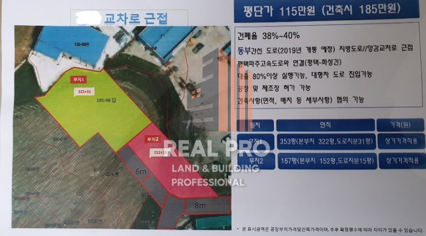 부지1: 353평(본부지322평, 도로지분 31평)