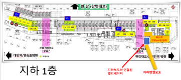 노량진역에서 노량진수산시장및 드림스퀘어 상가 진입시 9호선 7번출구를 나와서 바로앞 지하보도를 통해서 드림스퀘어의 엘리베이터를 타고 지하1층까지 가서 지하1층에서